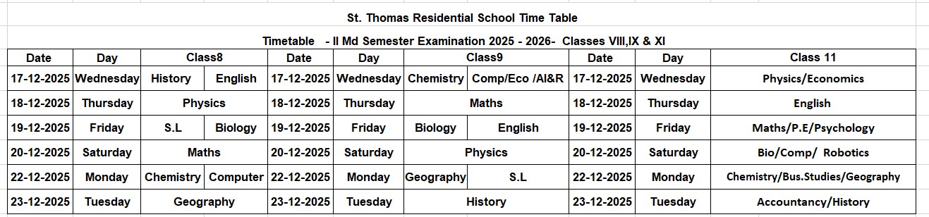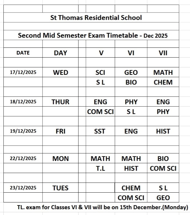 SECOND MID SEMESTER EXAM TIMETABLE 2025-26